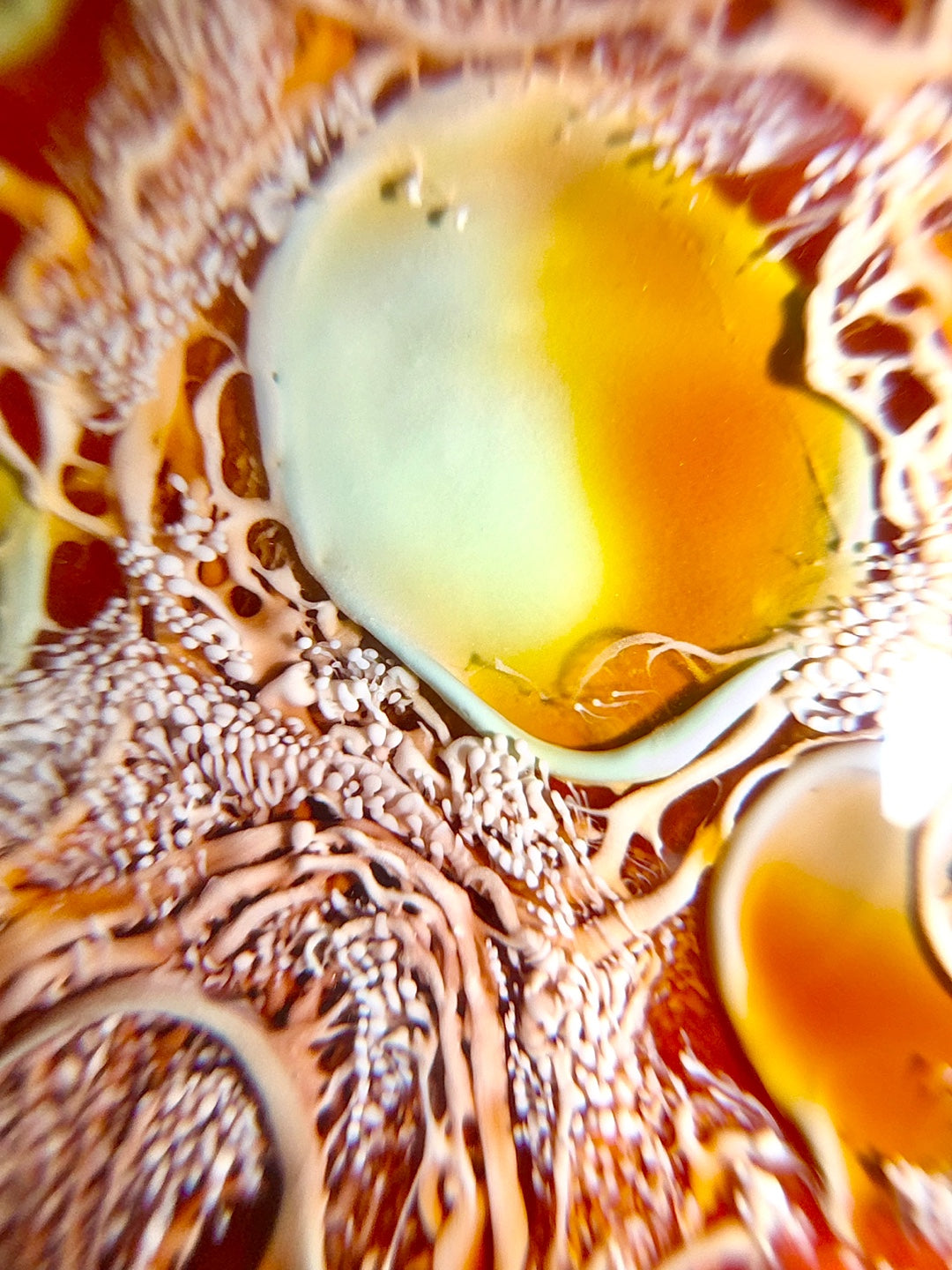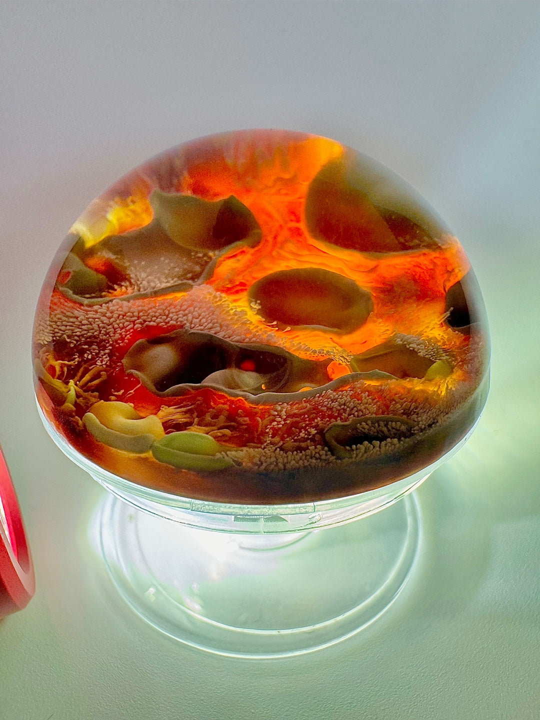 우리의 레진아트 작품은 미지의 아름다움과 신비를 탐구합니다. 우리가 의식적으로 이를 인식하면 더욱 빛을 발할 수 있습니다. 마치 우리가 곰팡에서도 신비로움을 발견한 것 처럼 말이죠.