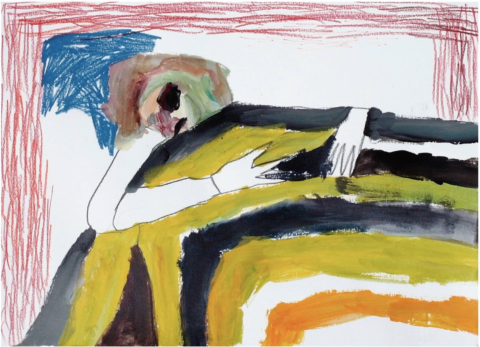 colored pencil, acrylic paint, pencil on paper