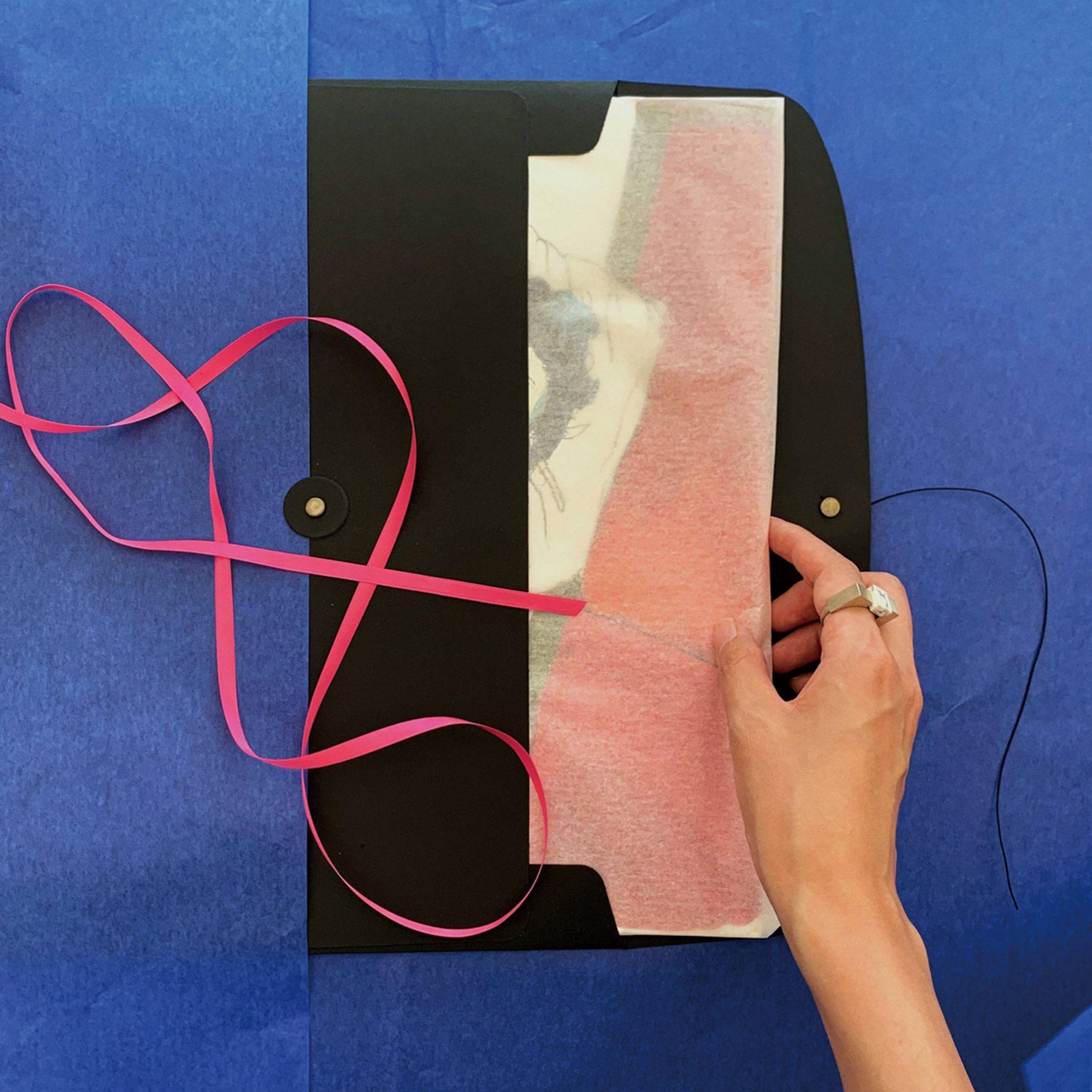 The painting is delivered in a black button envelope.