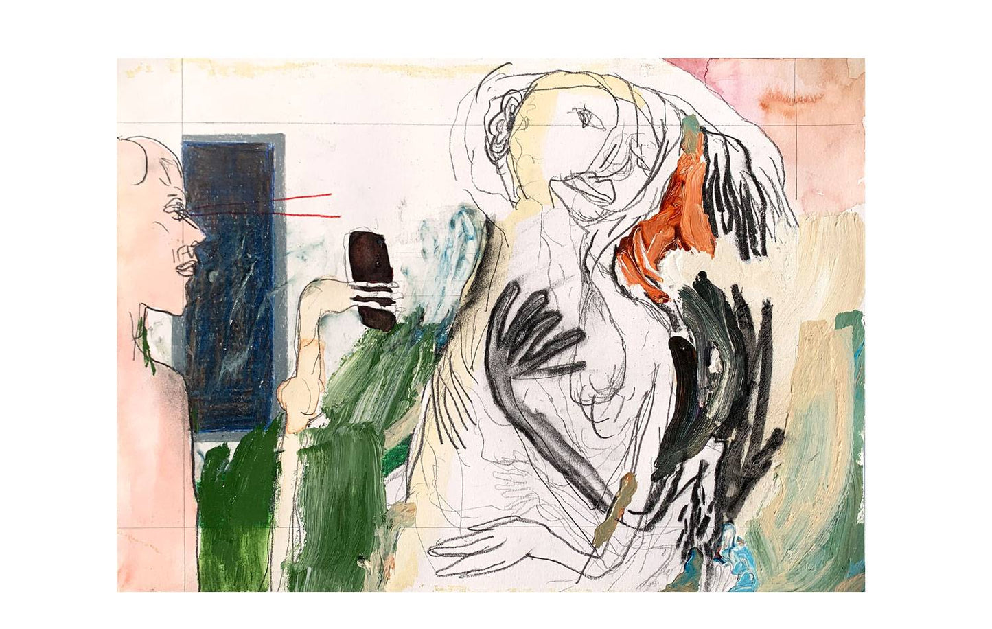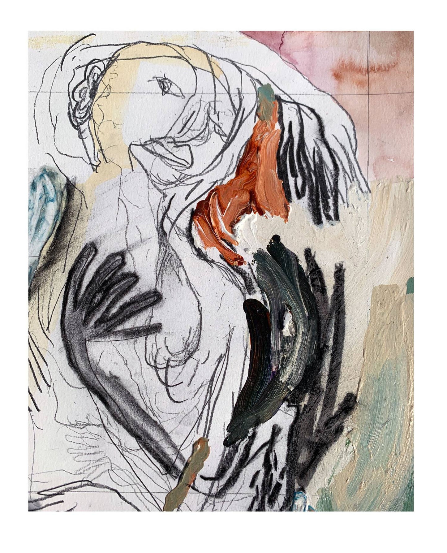 charcoal, pastel, pencil, water color, acrylic paint on paper