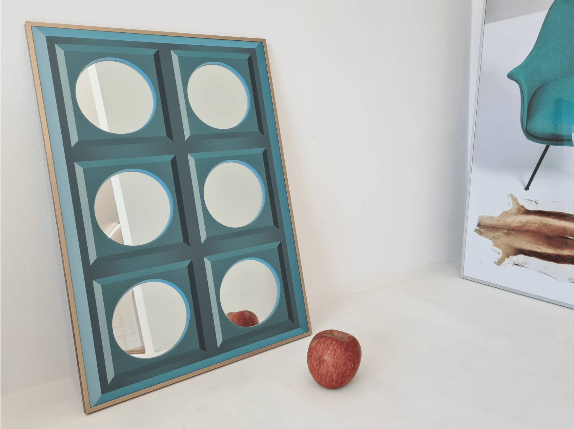 En vente원들과 파란 사과 포스터 거울 A3