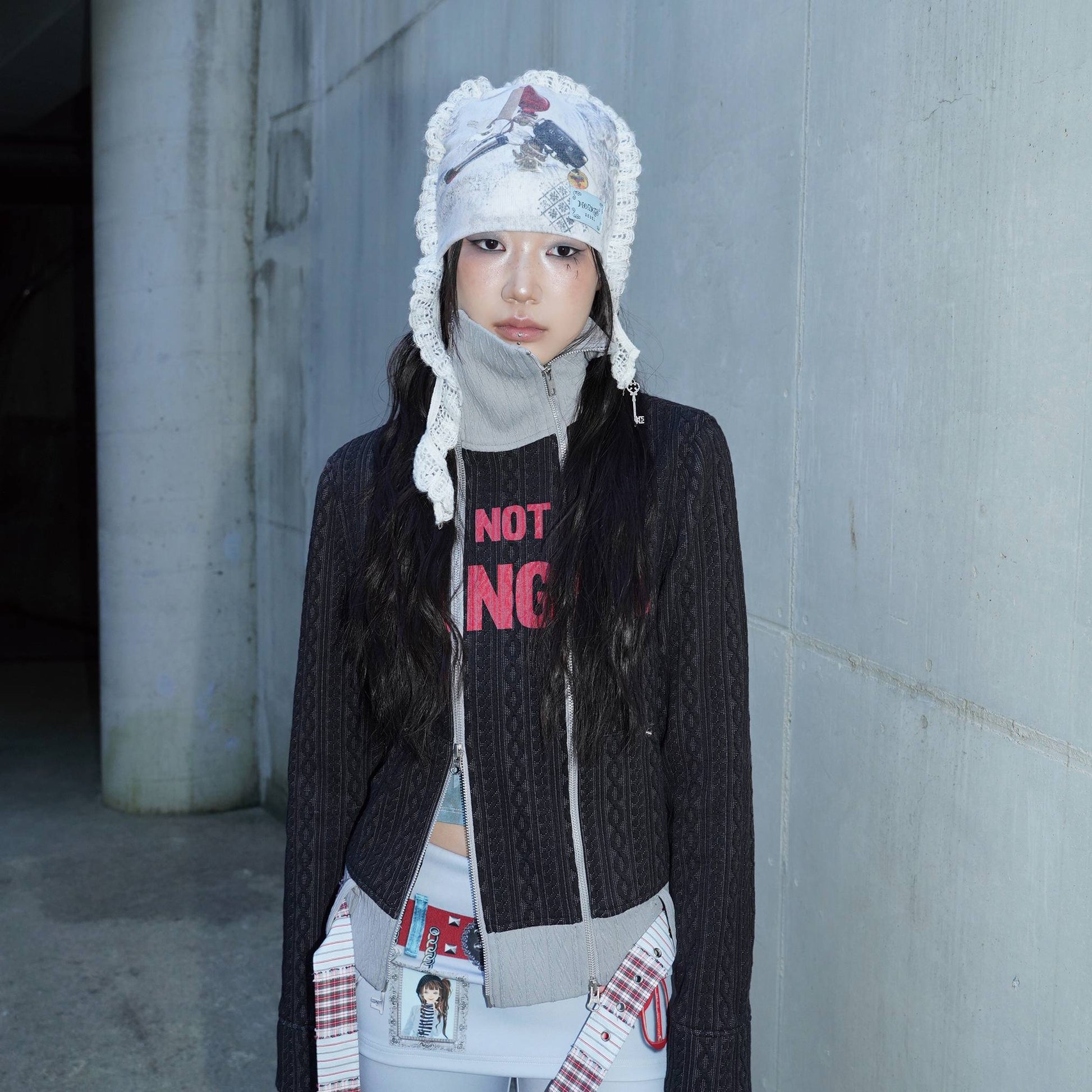 - 니트 짜임 레이스 + 실버 체인