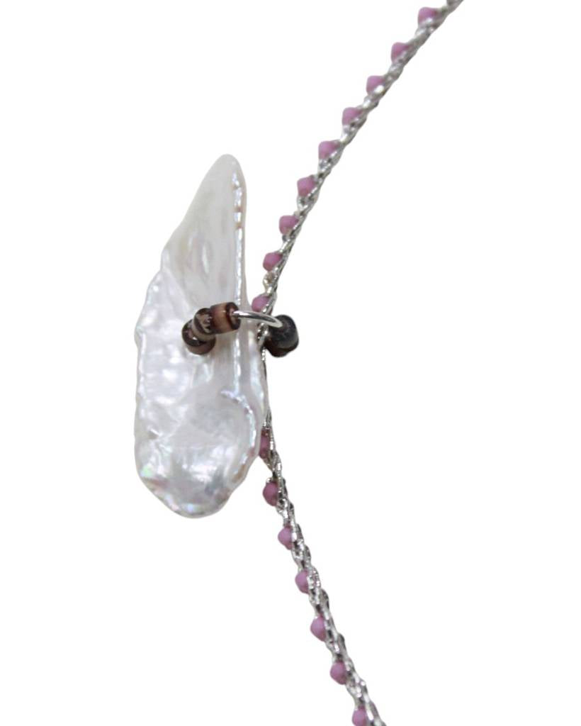 pearl and silver chips metallic crochet necklace