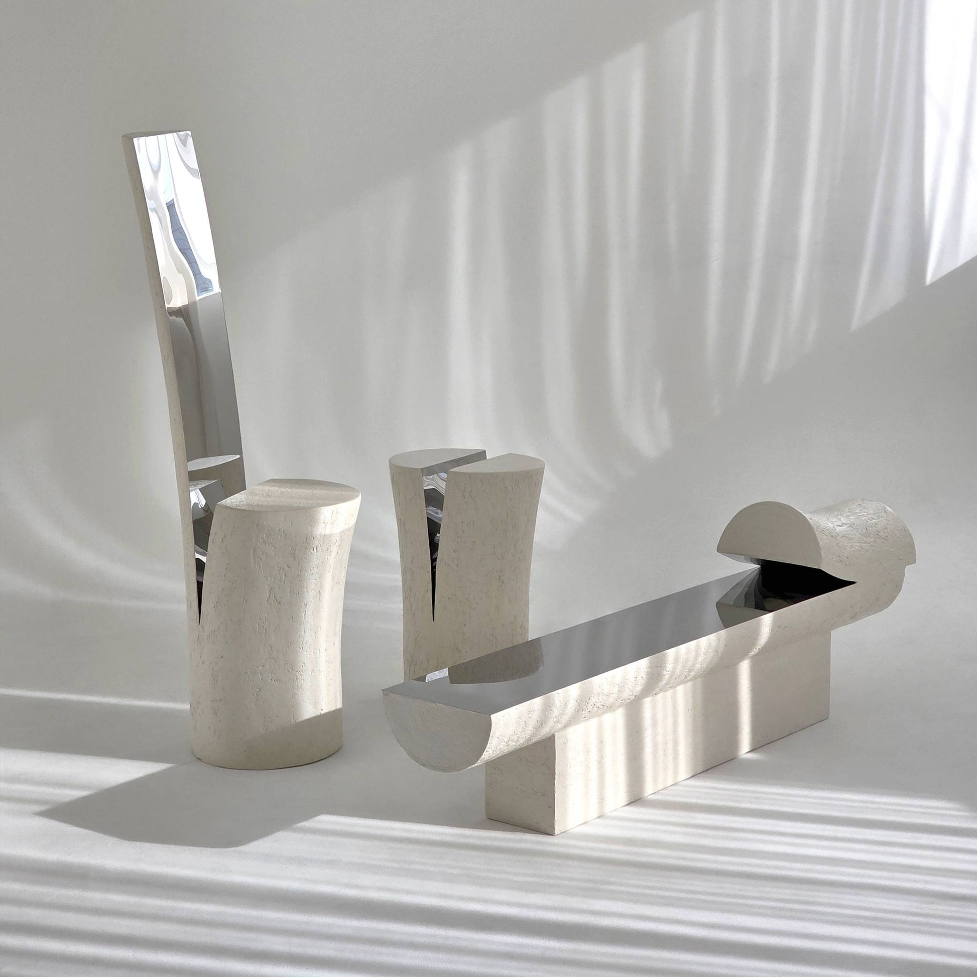 物性と質感の類似性やコントラストを活用し、不要な要素の緩和に集中し、ミニマルな構造と形の中で「個性あるシンプルさ」を追求して作業します。