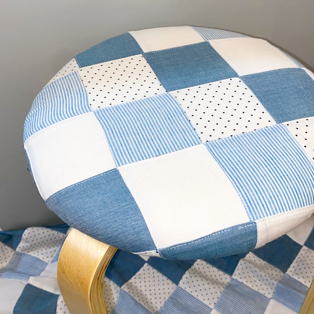 이어붙여 만든 패치워크 원단으로 제작된 스툴을 소개합니다,