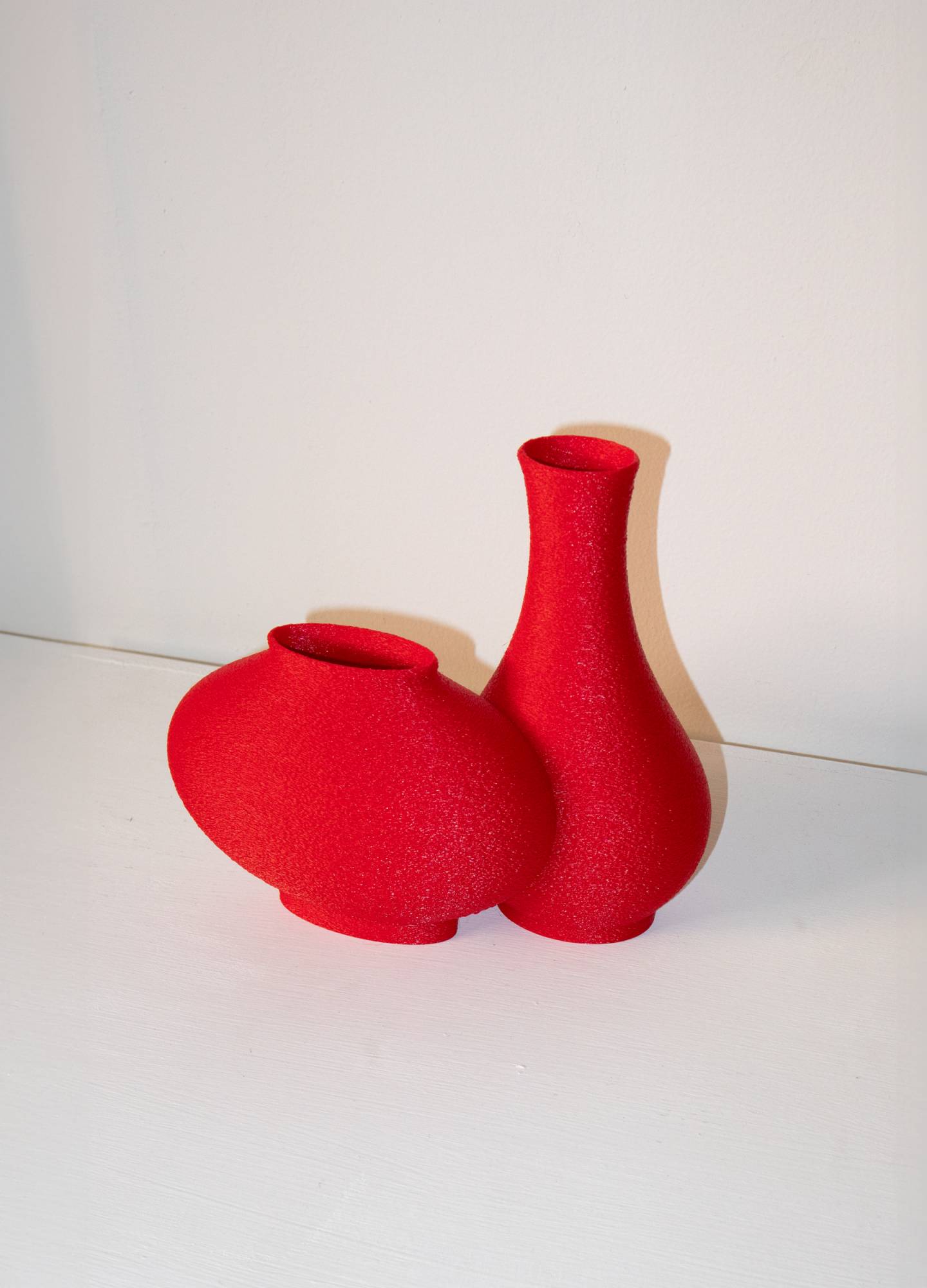 폴린루이즈 스튜디오는 조형 실험을 바탕으로 물성의 고유한 성질에 물음을 던지고 이를 시각화하여 화병, 선반 등의 제품을 전개합니다. 우리는 제품을 통해 공간에 내러티브를 부여하며, 그 중 화병 시리즈는 원근감이 왜곡된 시각을 재현한 디지털 크래프트 제품입니다. 전통적인 도자기 형태를 변형하여, 보는 각도에 따라 왜곡된 이미지에서 초현실적인 장면을 발견하고 이를 사유하는 즐거움을 전달하고자 합니다.