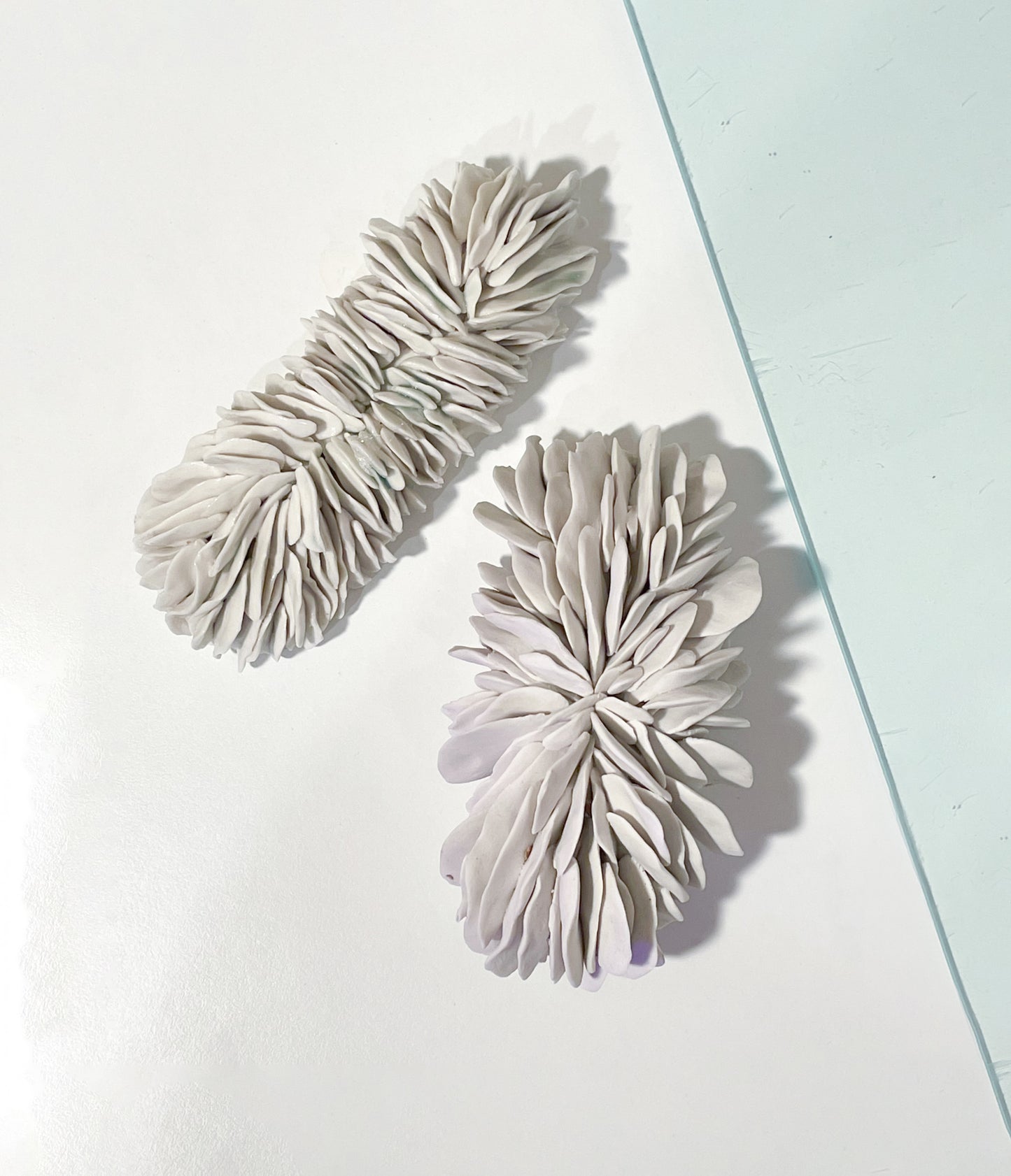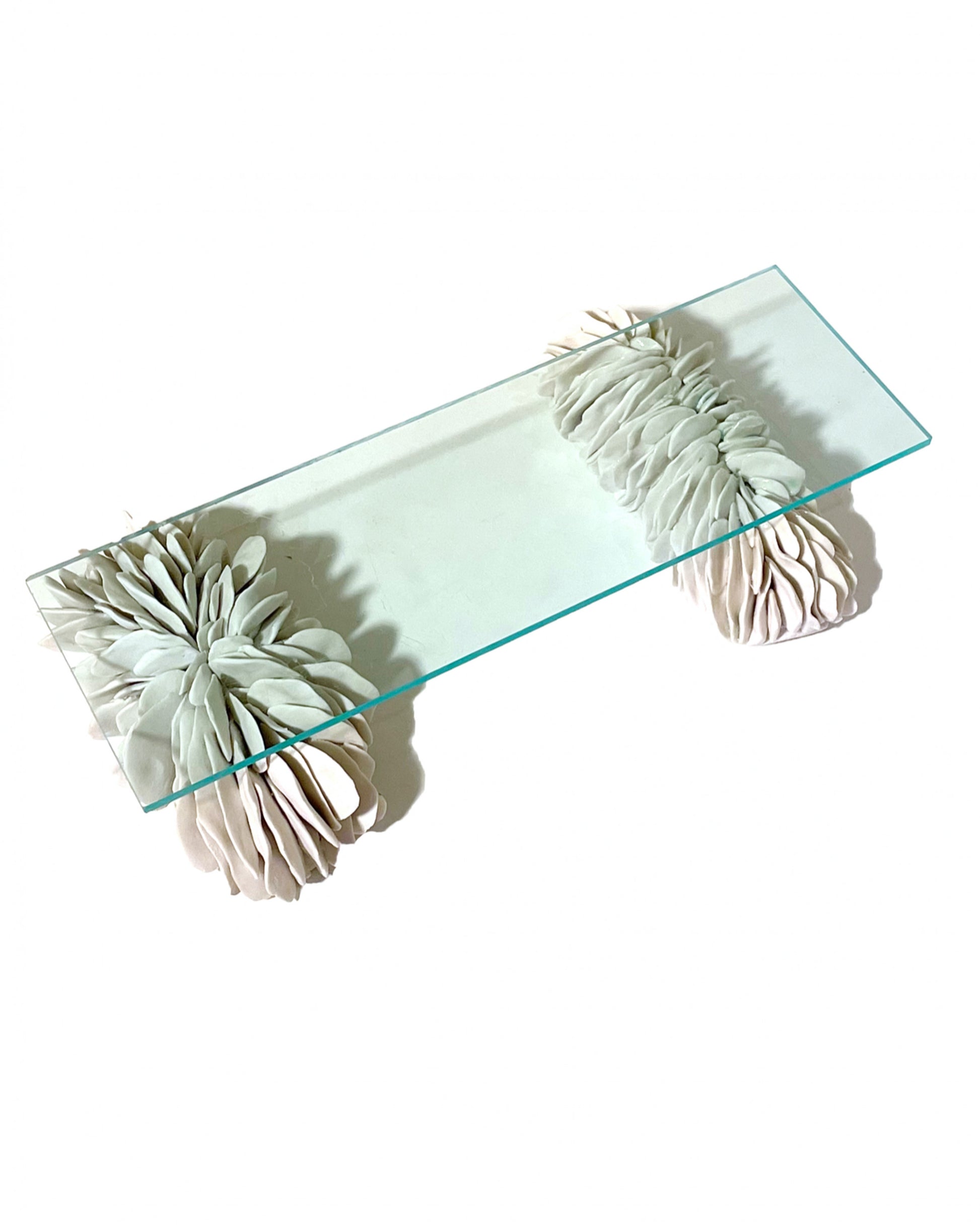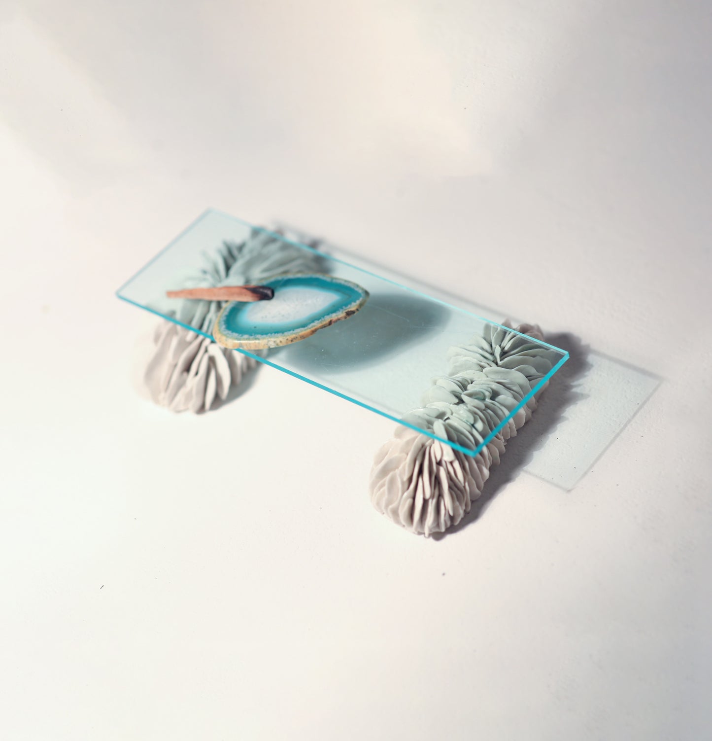 산호 모양의 도자조각 2개를 받침으로 사용하는 아크릴 트레이