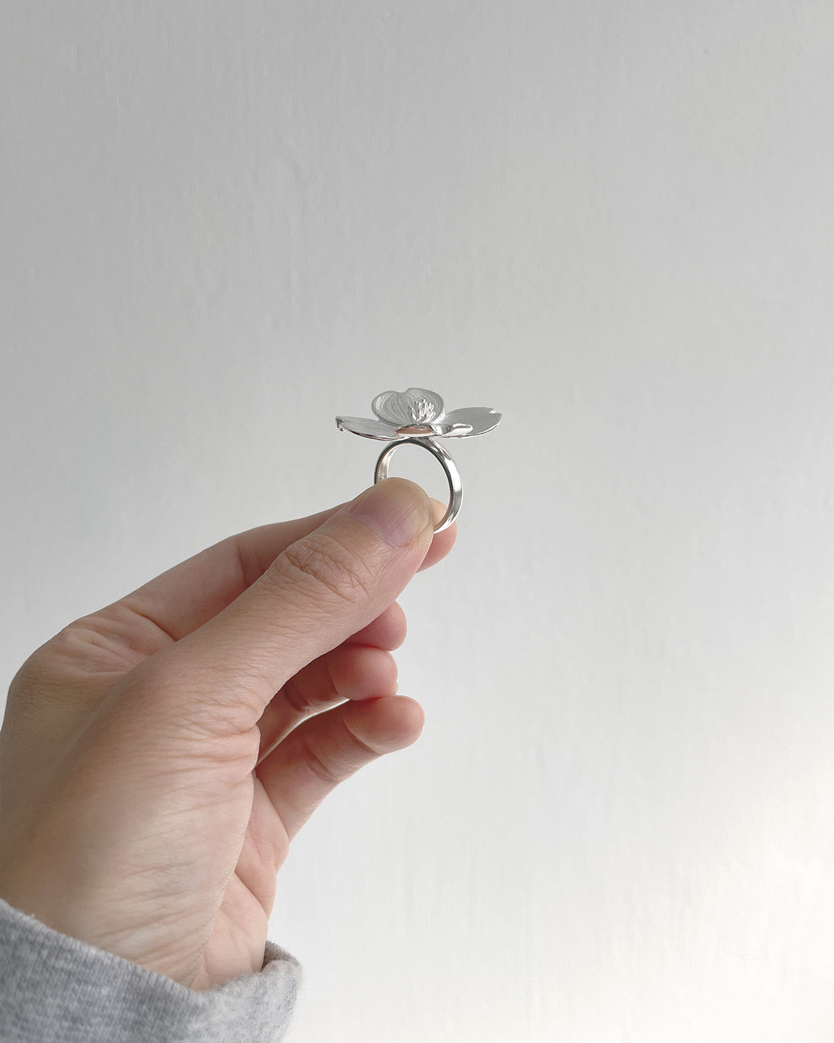 피부에 닿는 꽃의 뒷면과 손가락에 끼우는 밴드 부분은 유광 처리하여 편안한 착용감으로 마무리했습니다.