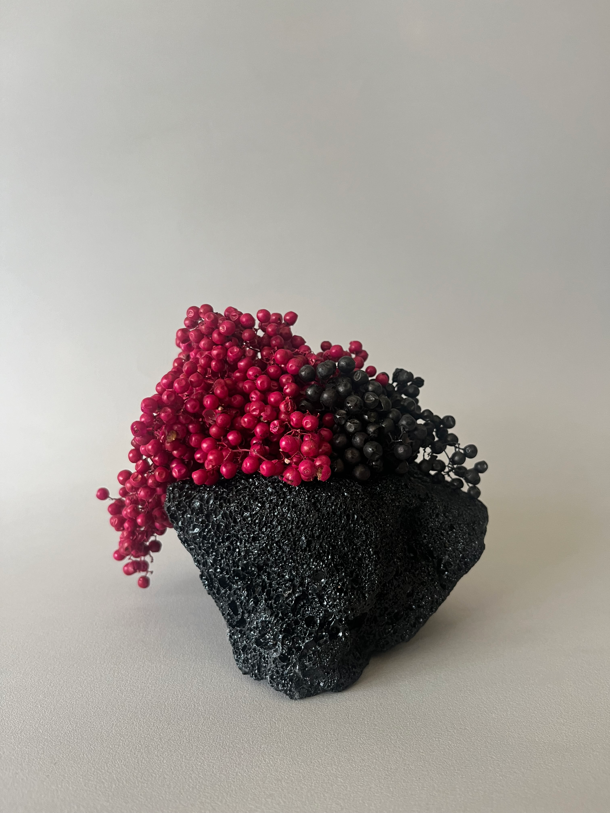 프리저브드(보존처리된 생화) 후추 열매를 활용하여 클래식한 이미지를 담아낸 식물 오브제입니다.