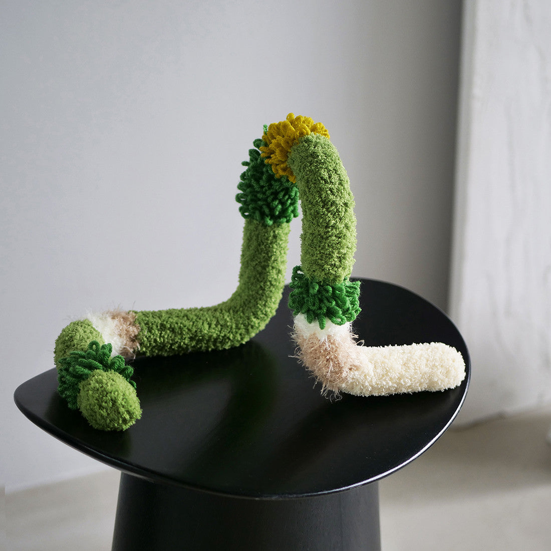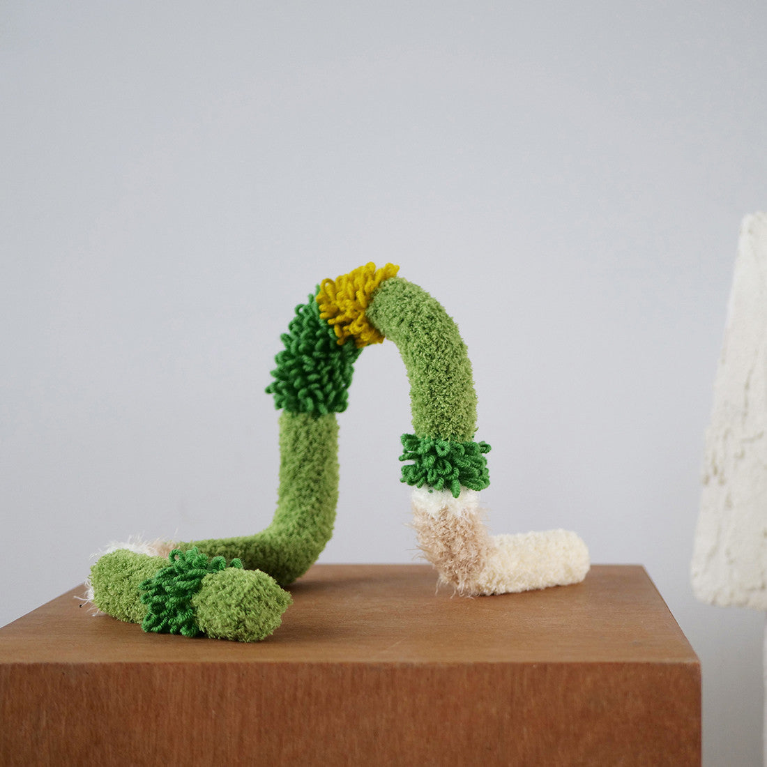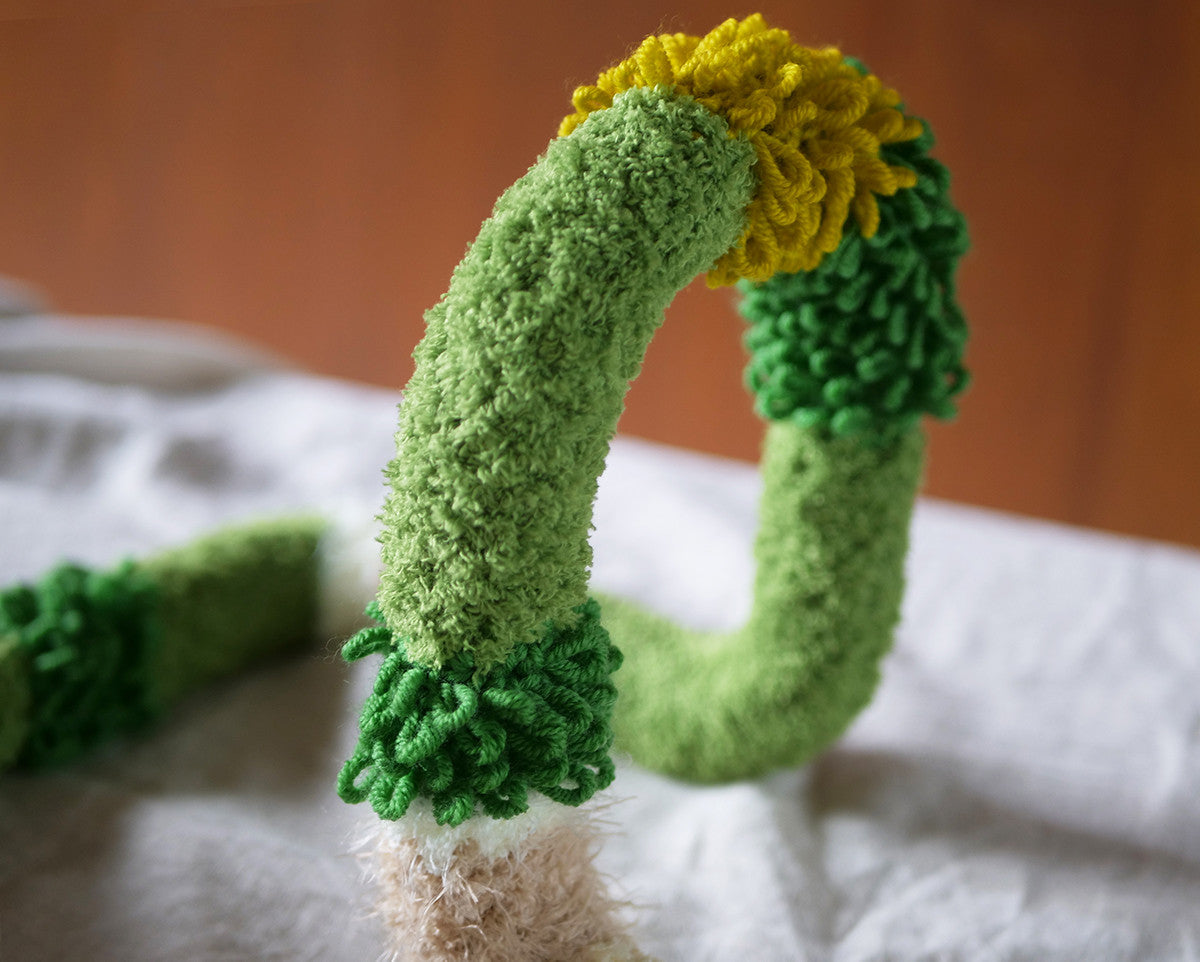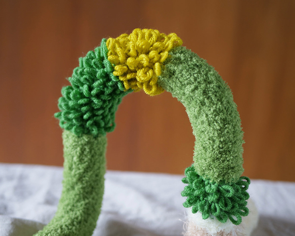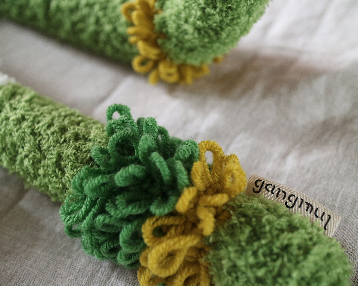 뜨개커버에 쓰이는 진녹색 털실이 단종되어 색상과 질감이 최대한 유사한 다른 실로 변경되었습니다.
