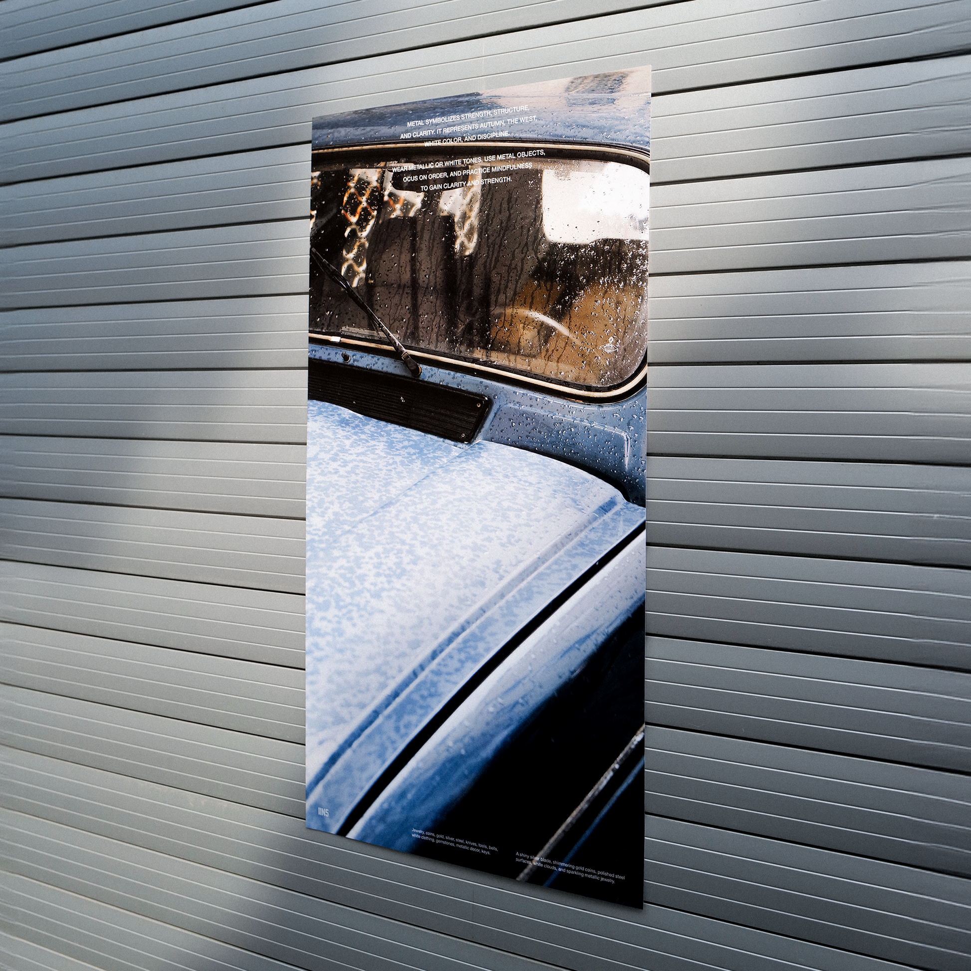 다섯 가지 기운(목, 화, 토, 금, 수) 중 ‘금’의 질감을 담아낸 인테리어 포스터입니다.