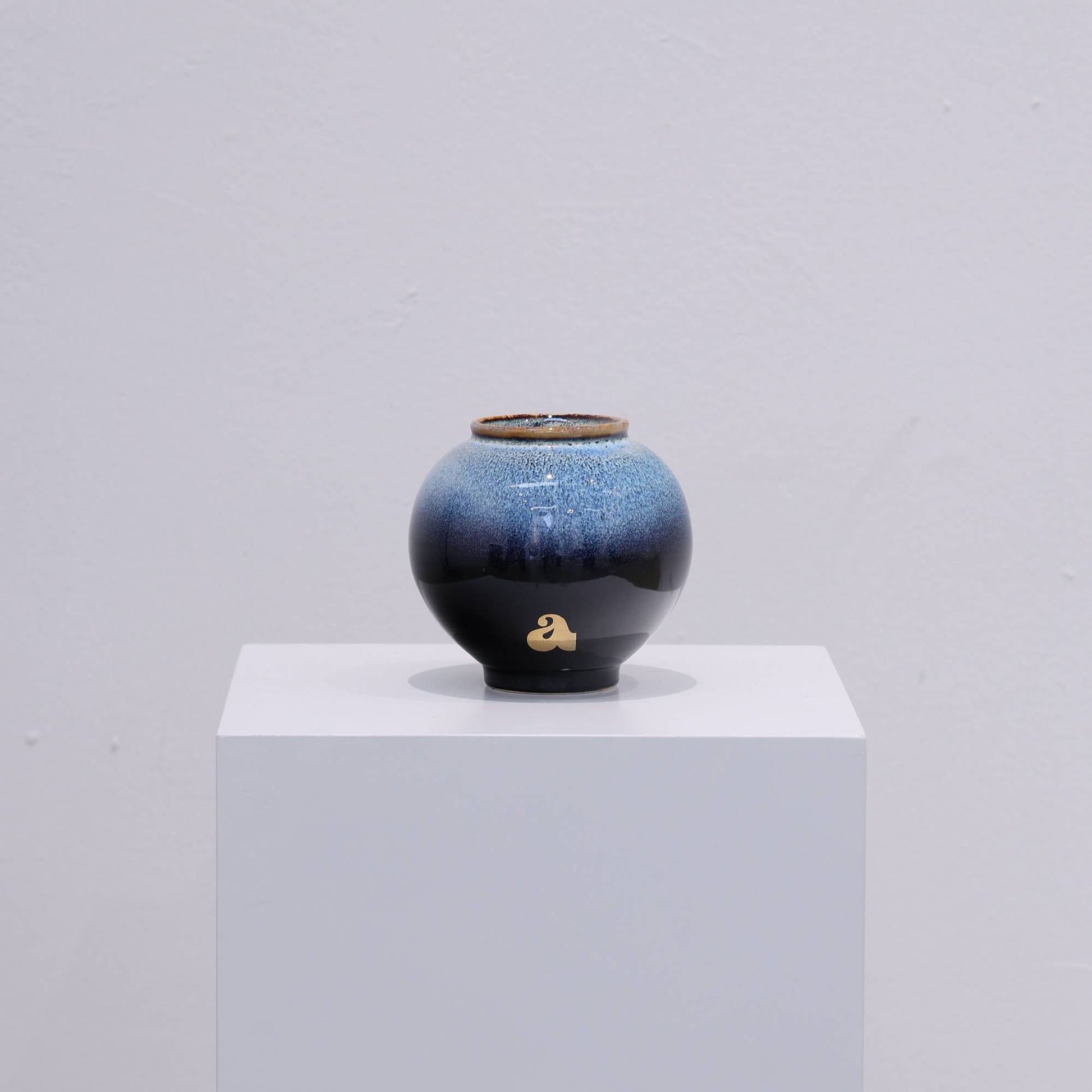 이 작품은 밤과 낮의 경계가 녹아내리는 순간을 탐구합니다. 깊고 어두운 유약이 밝은 유약과 만나며, 서로 융합되는 관계와 경계의 깊이를 선명하게 표현합니다. 수차례의 실험을 통해, 어둡고 영묘한 밤하늘의 빛이 밝은 유약 속으로 자연스럽게 스며들어 마치 중력처럼 가라앉은 푸른 흔적을 만들어냈습니다.